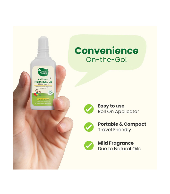 Mummas, is your baby tearing the mosquito patches and avoiding the repellent spray? Worry not! Meet Mother Sparsh Anti Insect Fabric Roll-On.