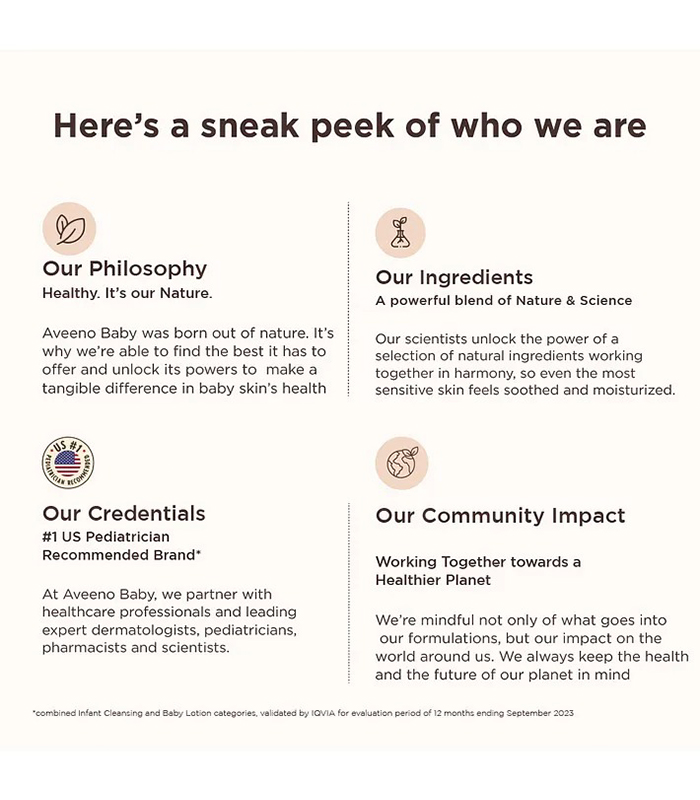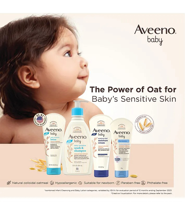 Gentle Cleansing: Nourish and cleanse your baby’s delicate skin with our tear-free formula, designed for sensitive skin and suitable for newborns. The Power of Oats: Harnessing the gentle yet potent properties of oats, our baby wash & shampoo offers unparalleled nourishment for your baby’s delicate skin. Oat kernel extract, renowned for its soothing abilities, calms irritation and inflammation, while fortifying the skin’s natural defenses. Experience the gentle touch of nature, providing lasting relief and protection for your little one’s sensitive skin. Trusted Formulation: Recommended by US dermatologists and pediatricians, our wash & shampoo is hypoallergenic and free from soap, parabens, sulfates, and phthalates. Rich Lather, Light Fragrance: Experience a rich lather that rinses clean, leaving a subtle, fresh fragrance on your baby’s soft skin and hair. Everyday Softness: Gentle enough for daily use, this wash & shampoo helps maintain baby’s skin and hair softness, promoting a healthy daily routine. Simple Application: Convenient and mess-free, the pump dispenser ensures easy application onto a wet washcloth or hand for a thorough cleanse. Dispose of the neck insert responsibly.