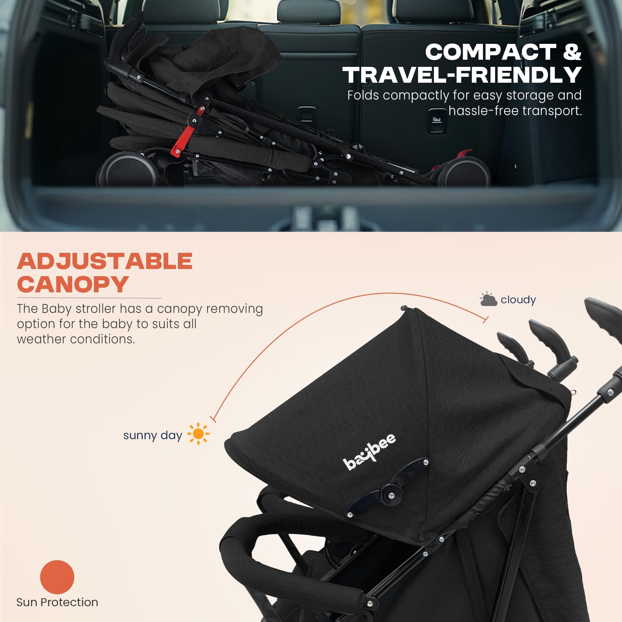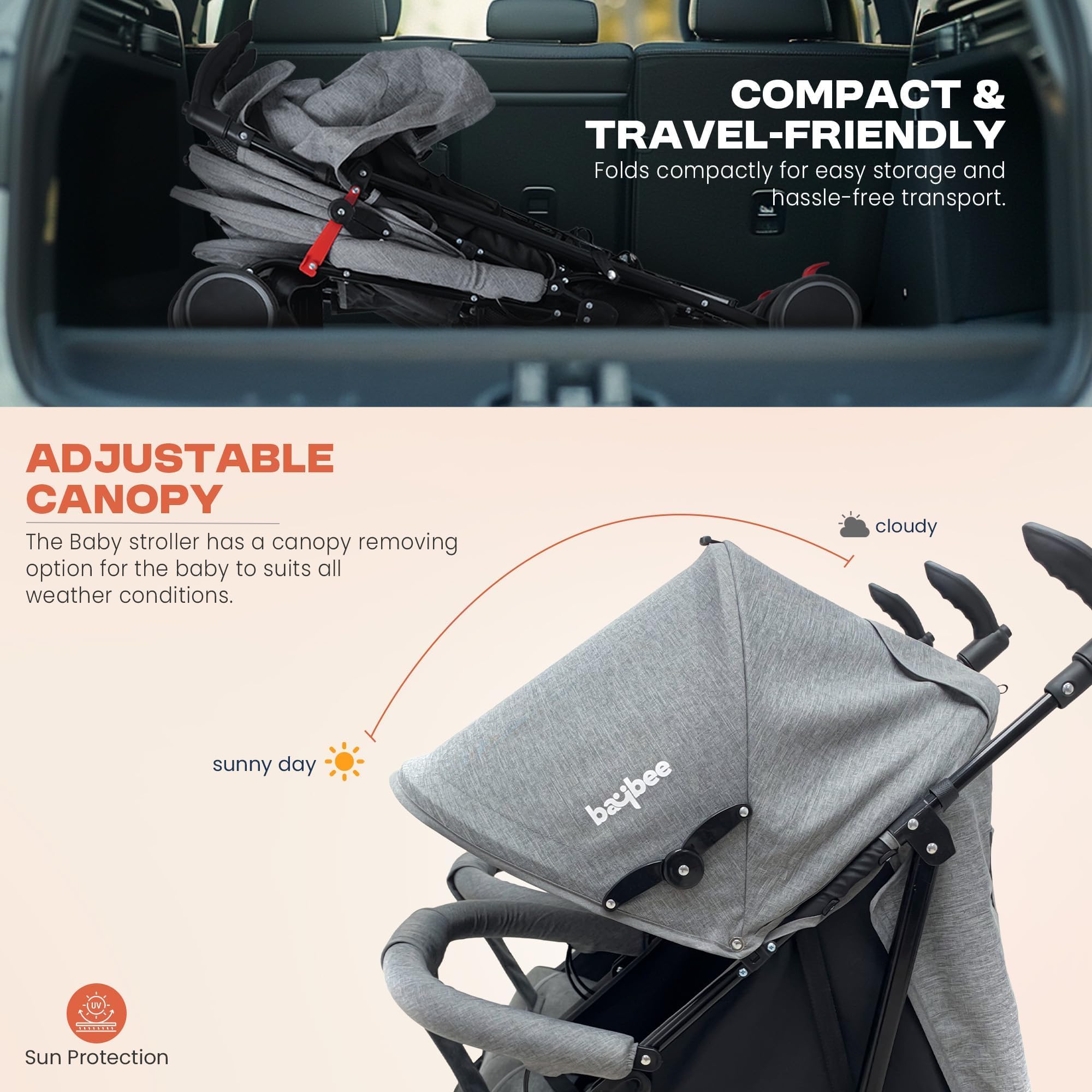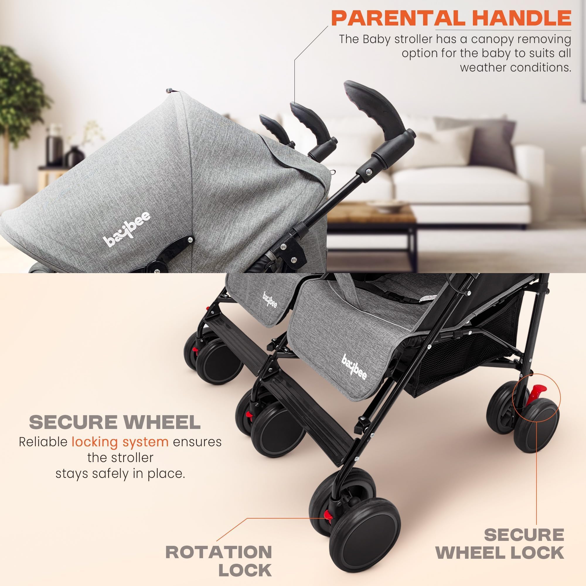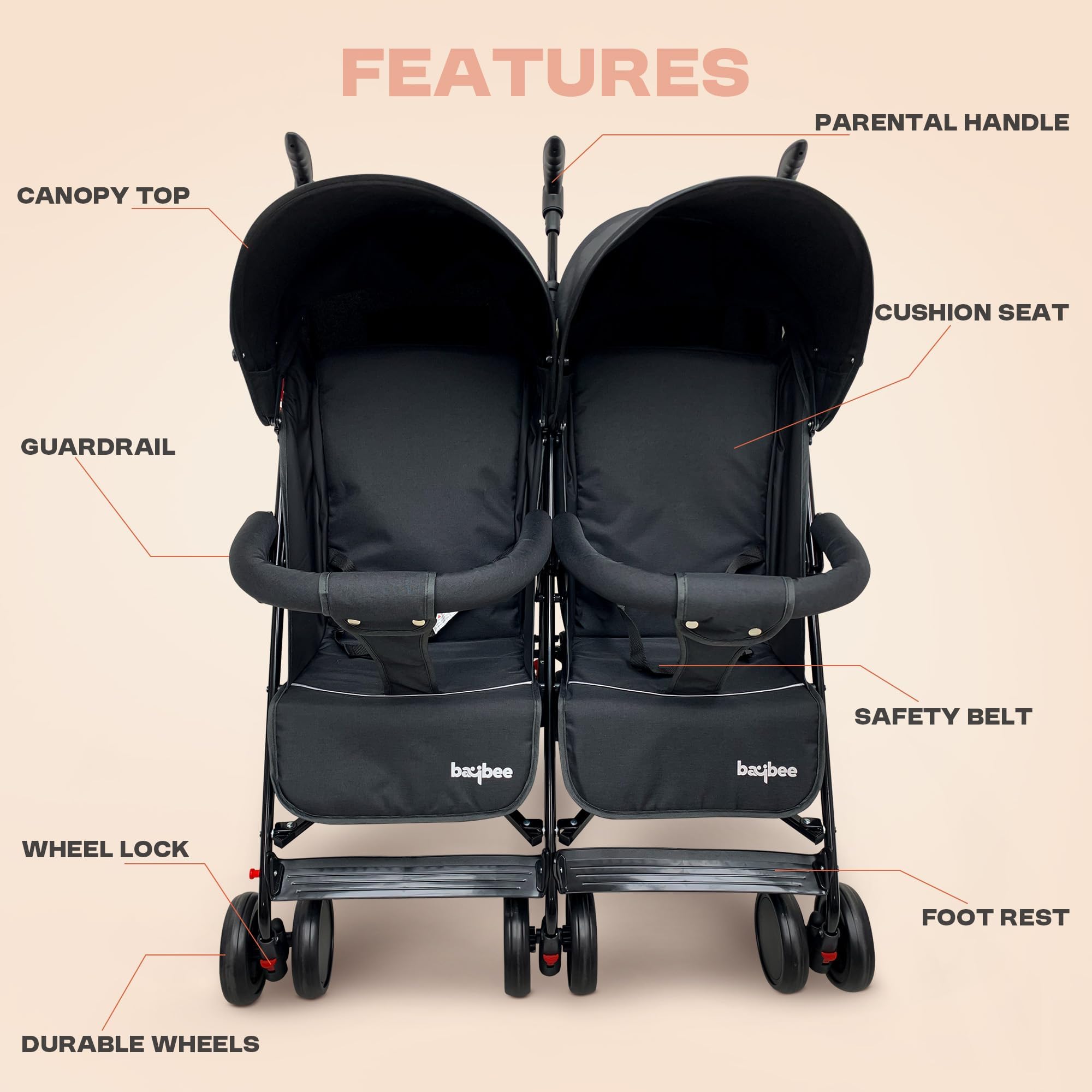 Baybee 2-in-1 Twin Baby Stroller for 0-3 Years Lightweight Foldable Pram