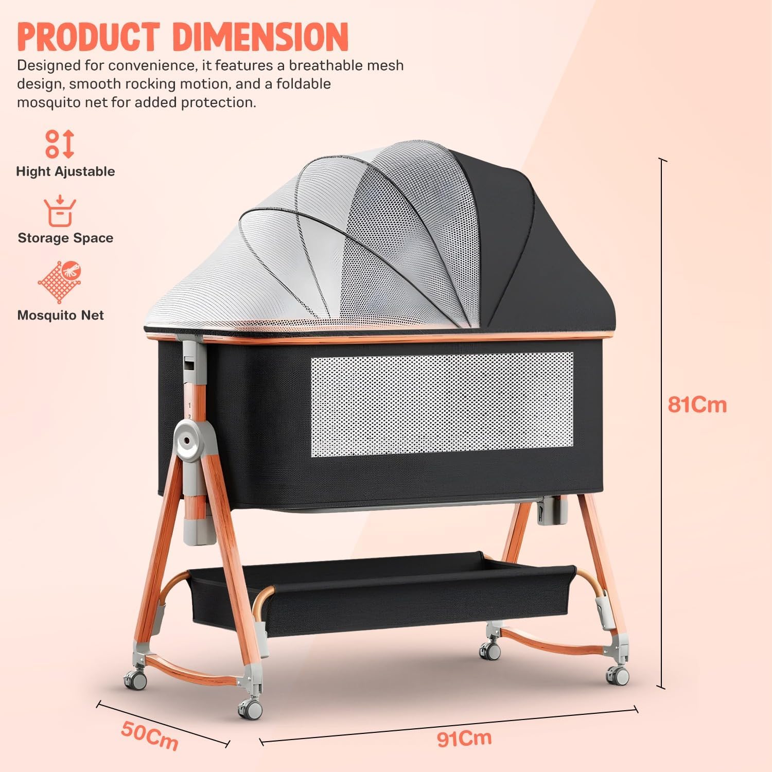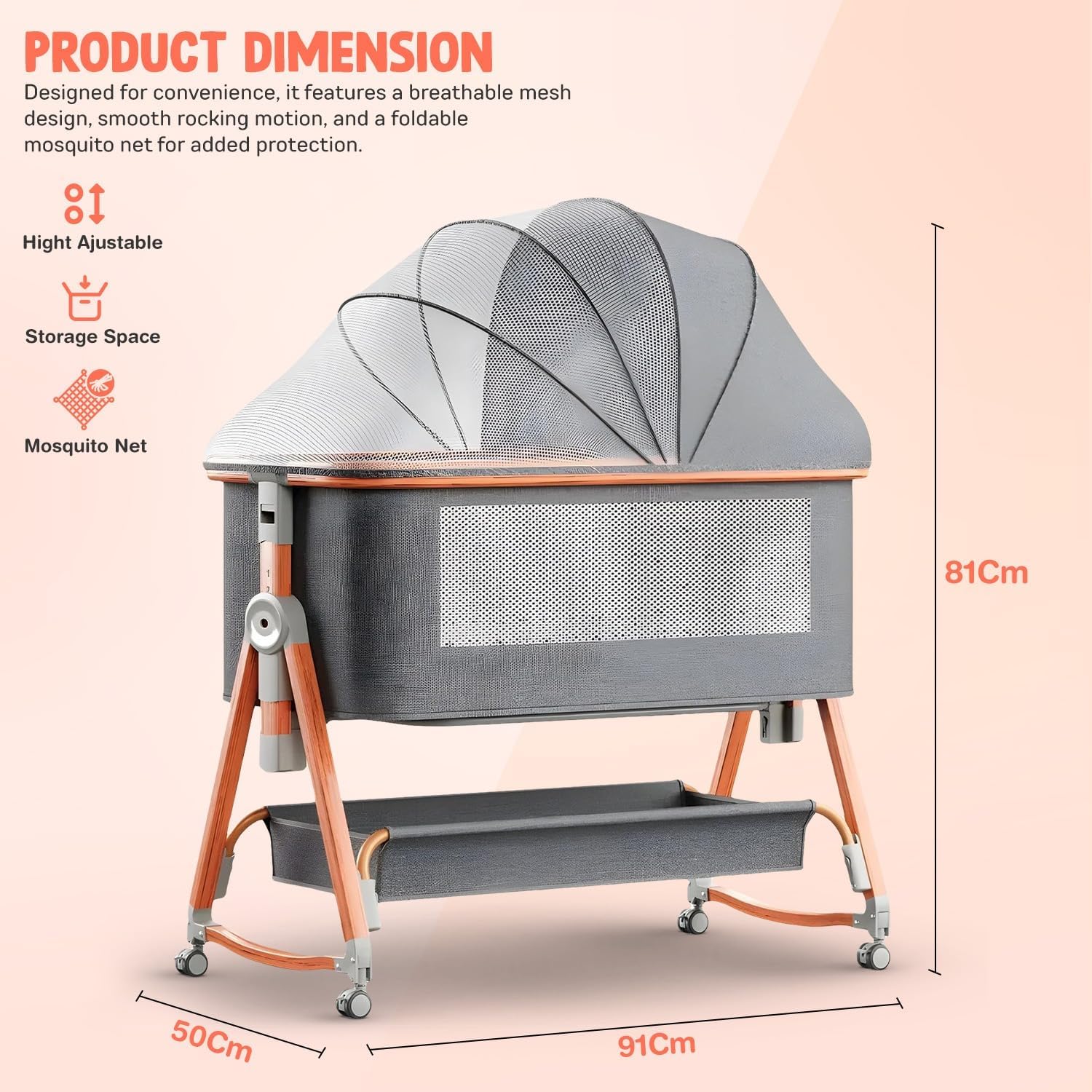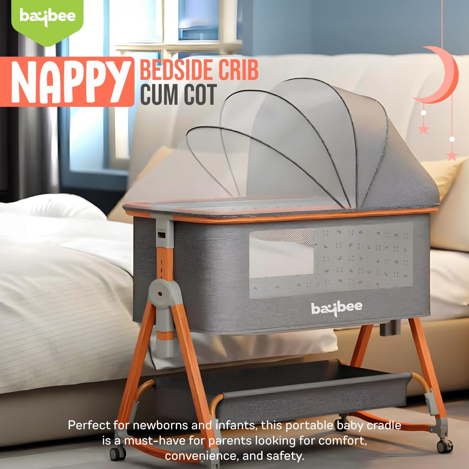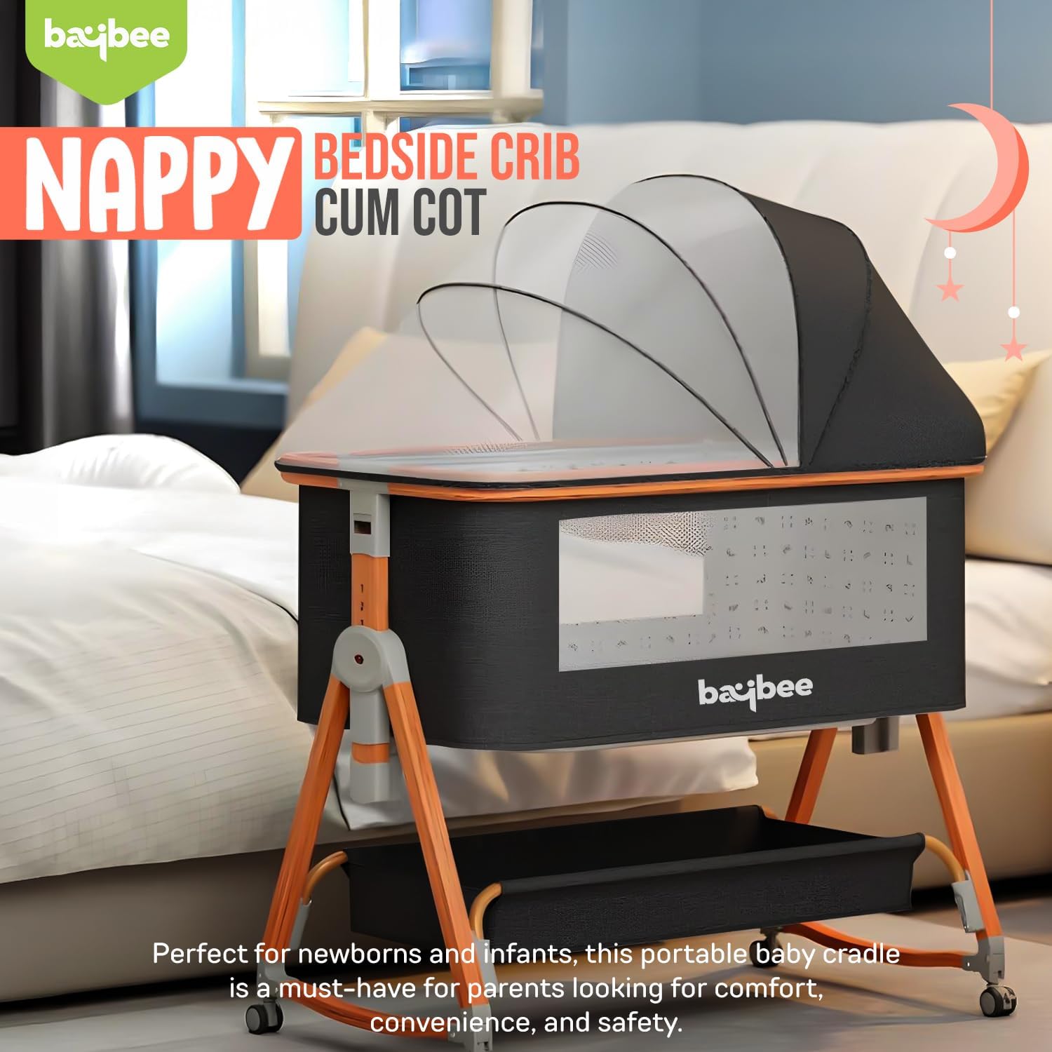 Baybee 3 in 1 Baby Bedside Crib Cradle with 6 Height Adjustments
