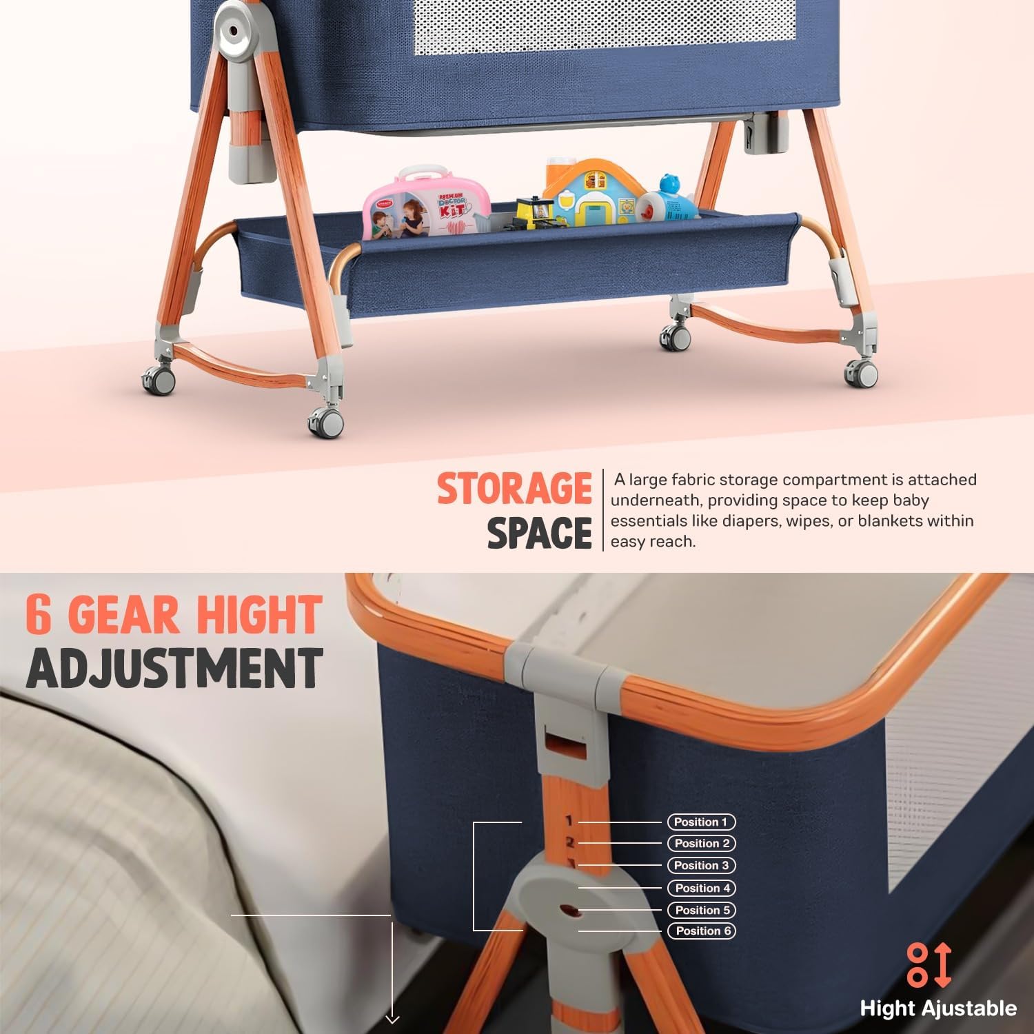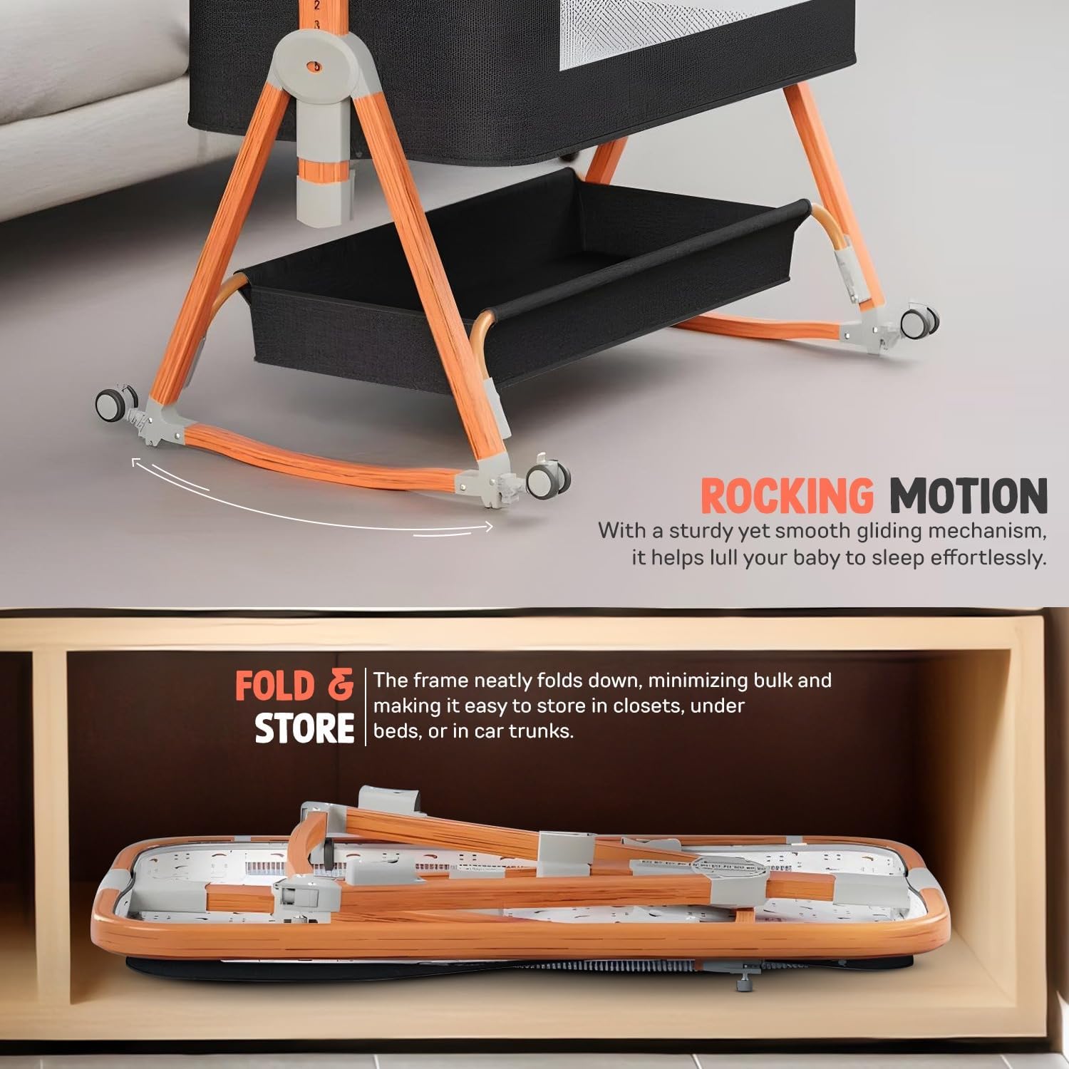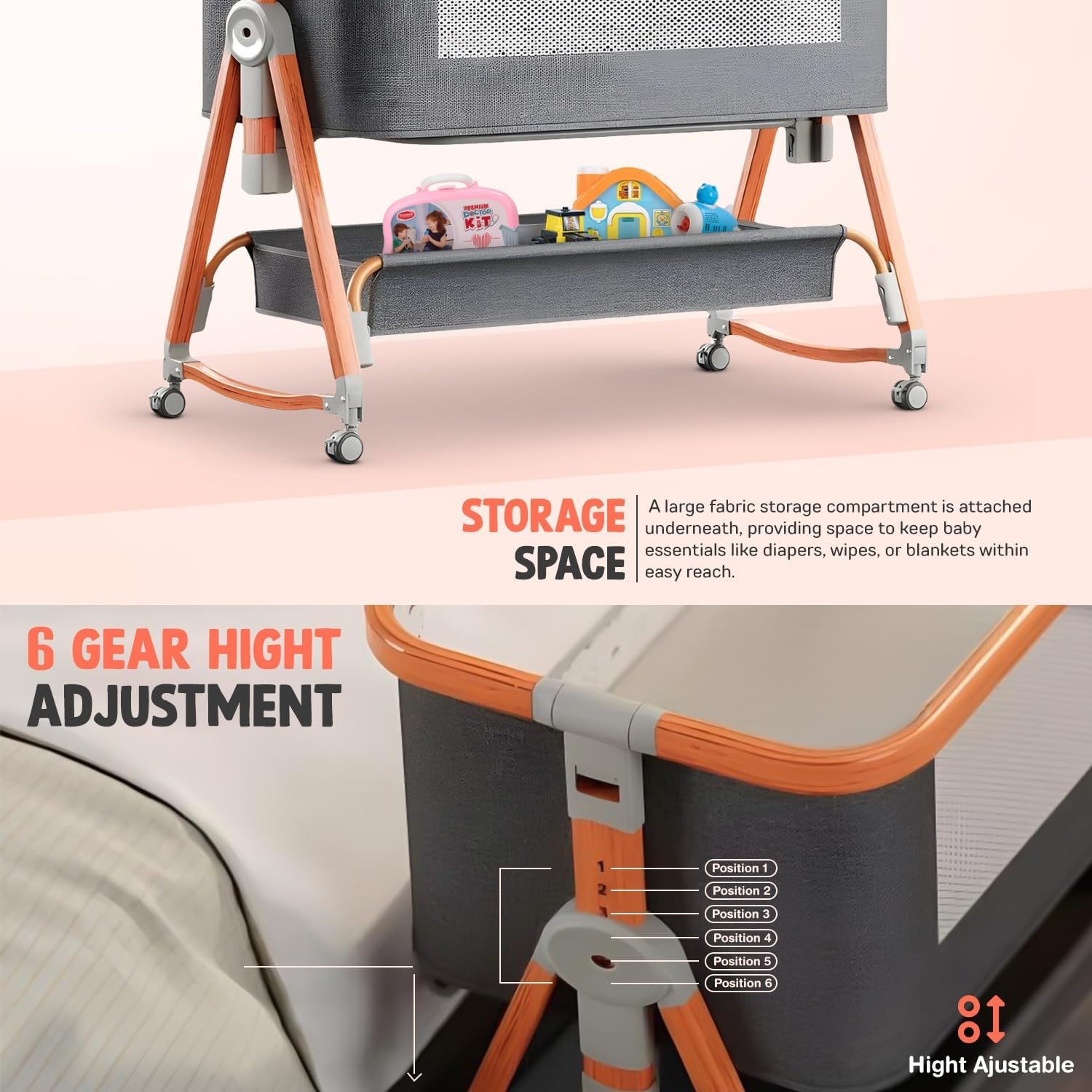 Baybee 3 in 1 Baby Bedside Crib Cradle with 6 Height Adjustments