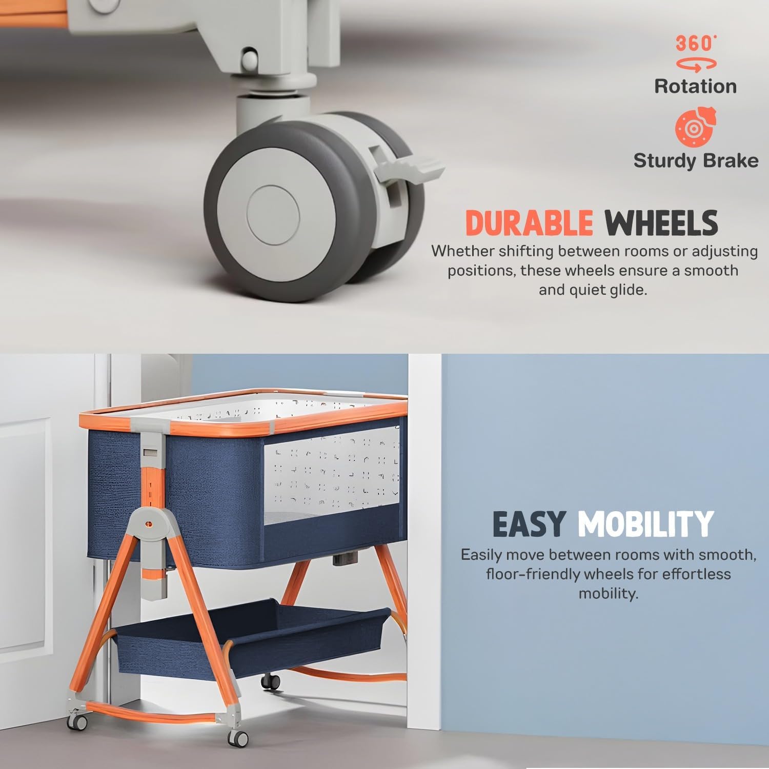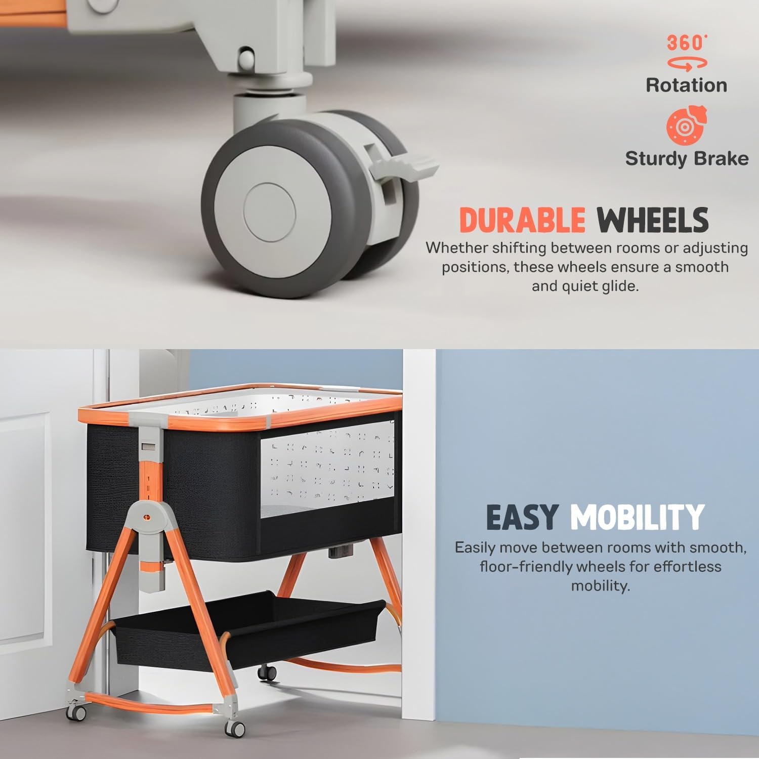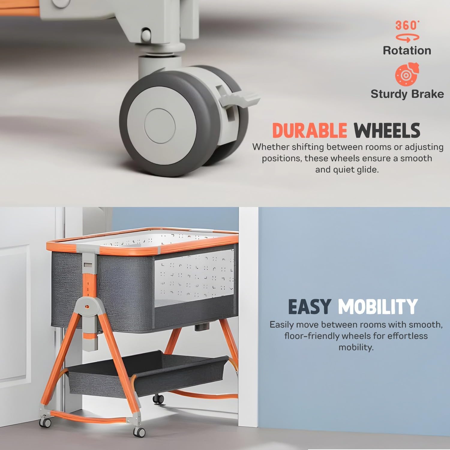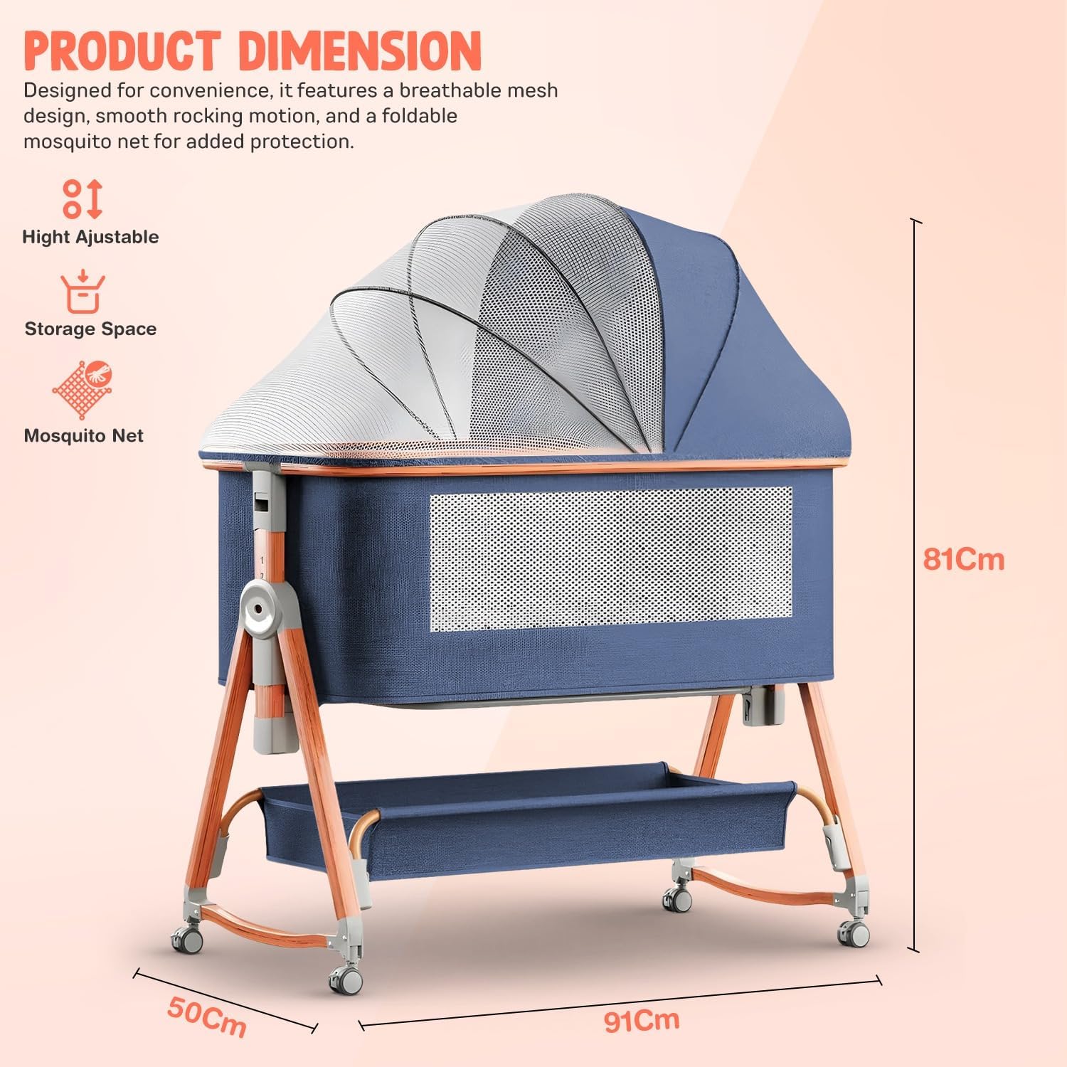 Baybee 3 in 1 Baby Bedside Crib Cradle with 6 Height Adjustments