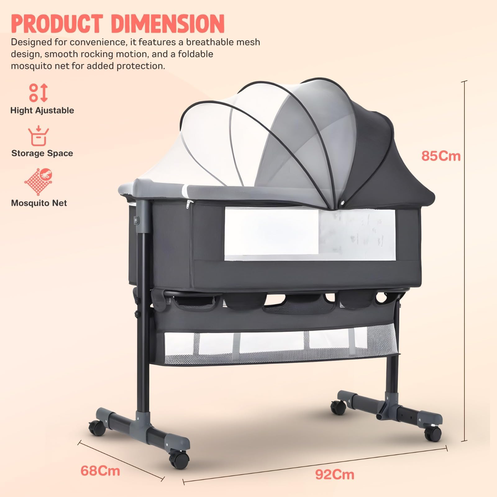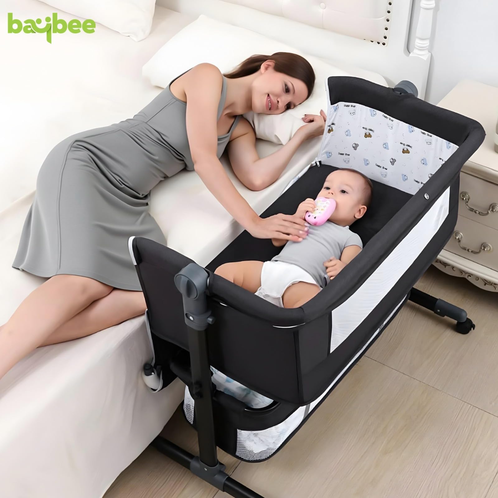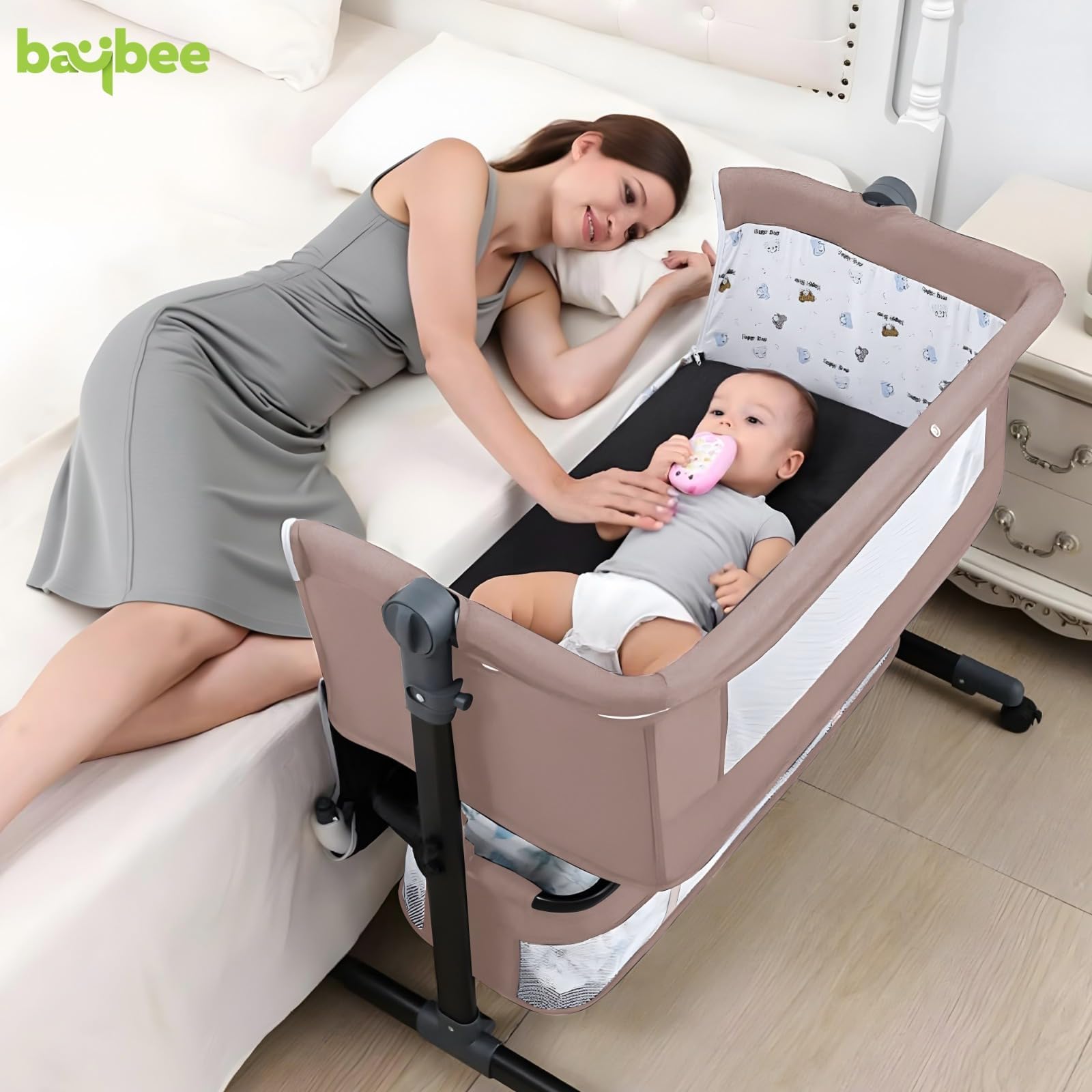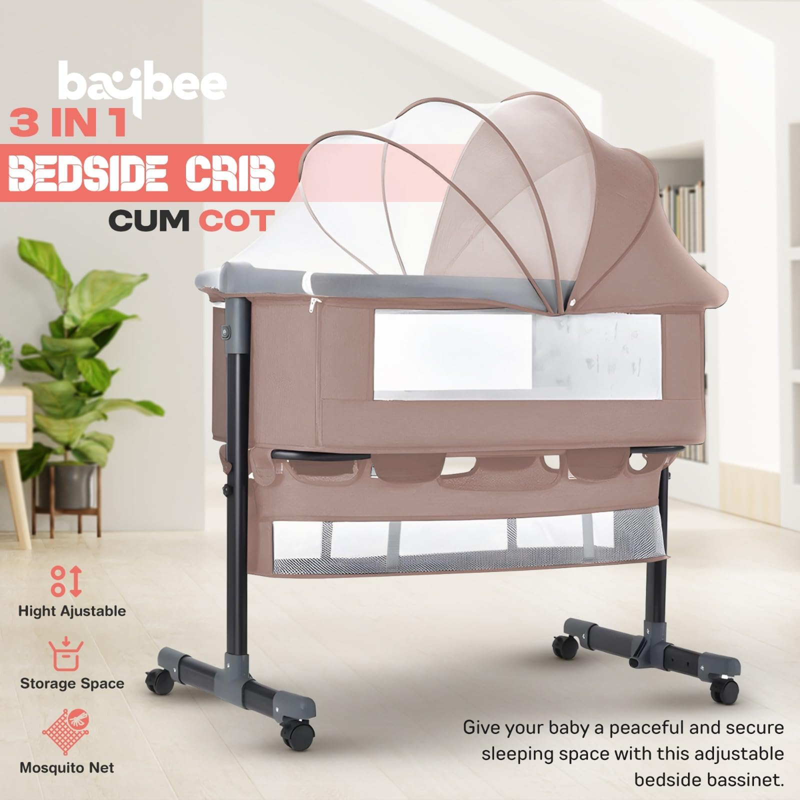 Baybee 3 in 1 Baby Bedside Crib with 2 Height Adjustable Bed Cot Bedside Bassinet for Kids