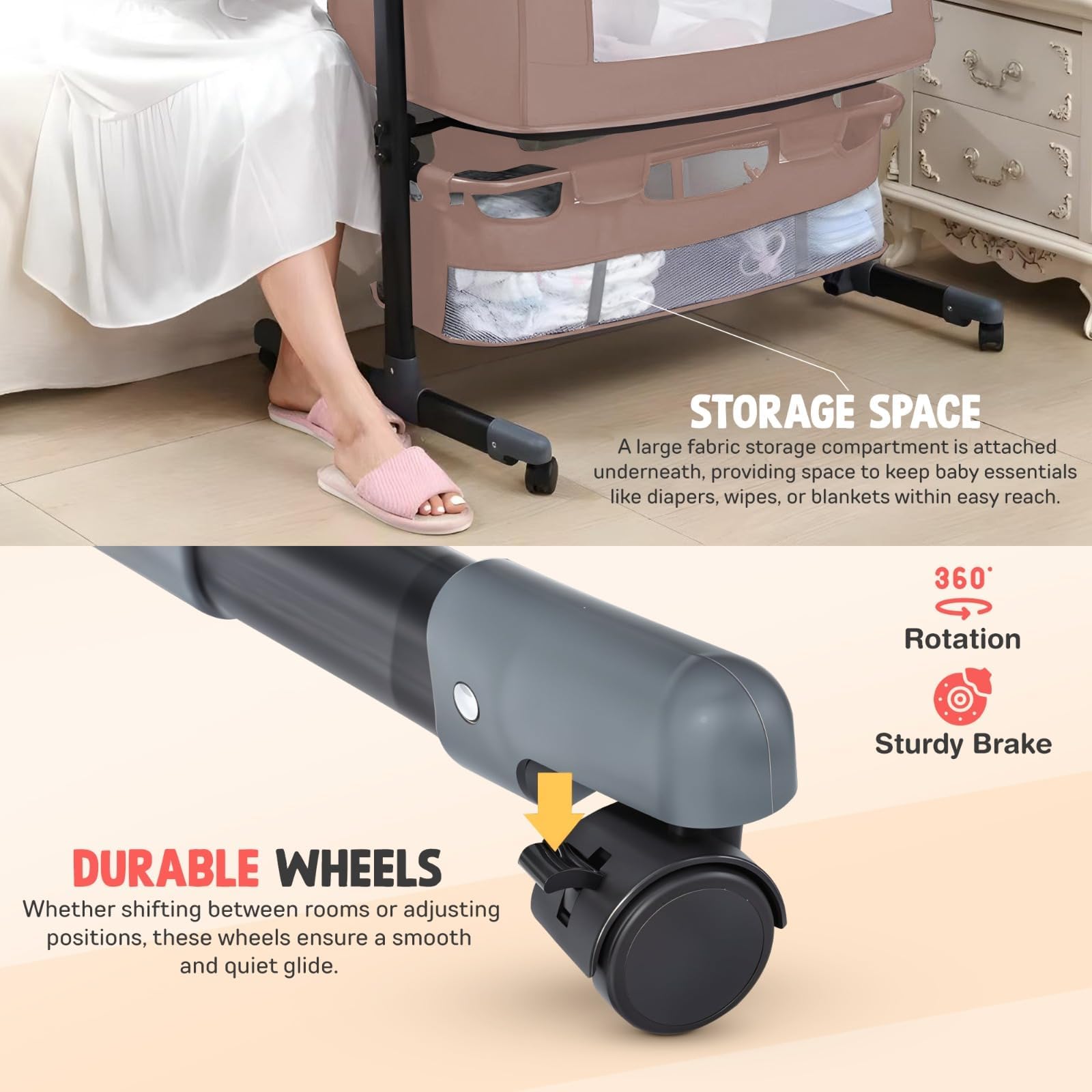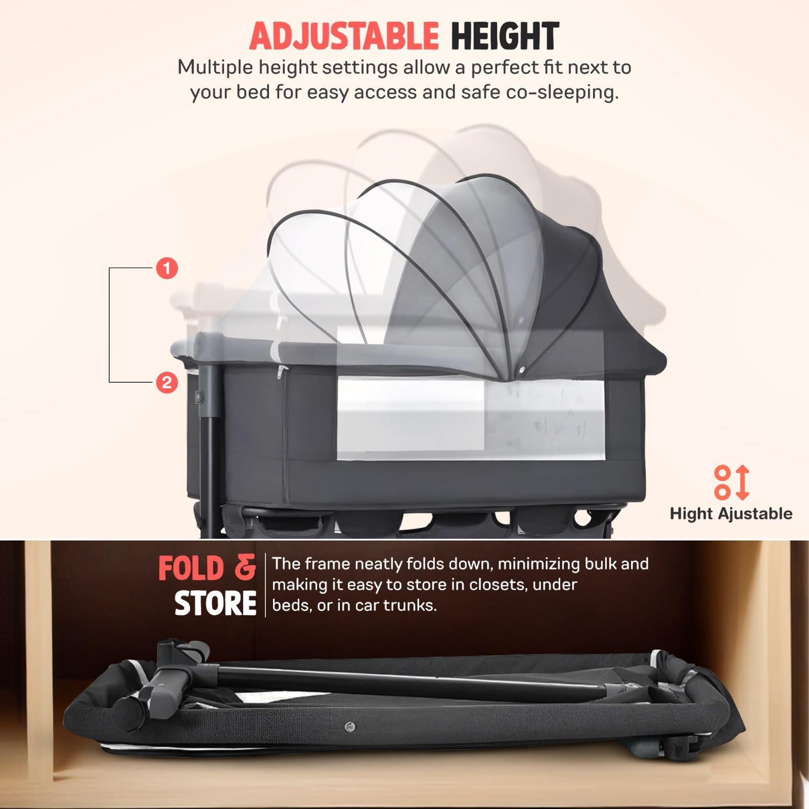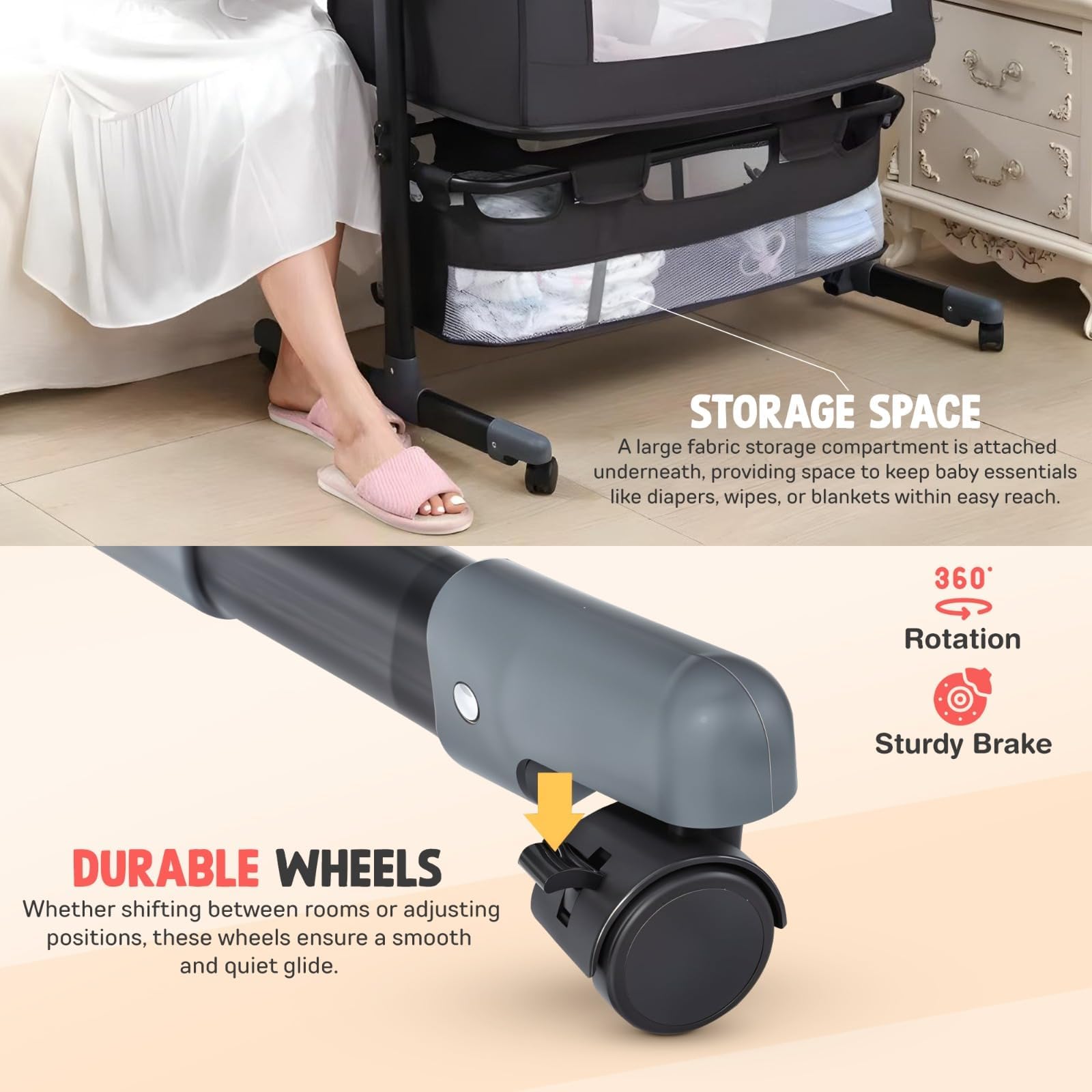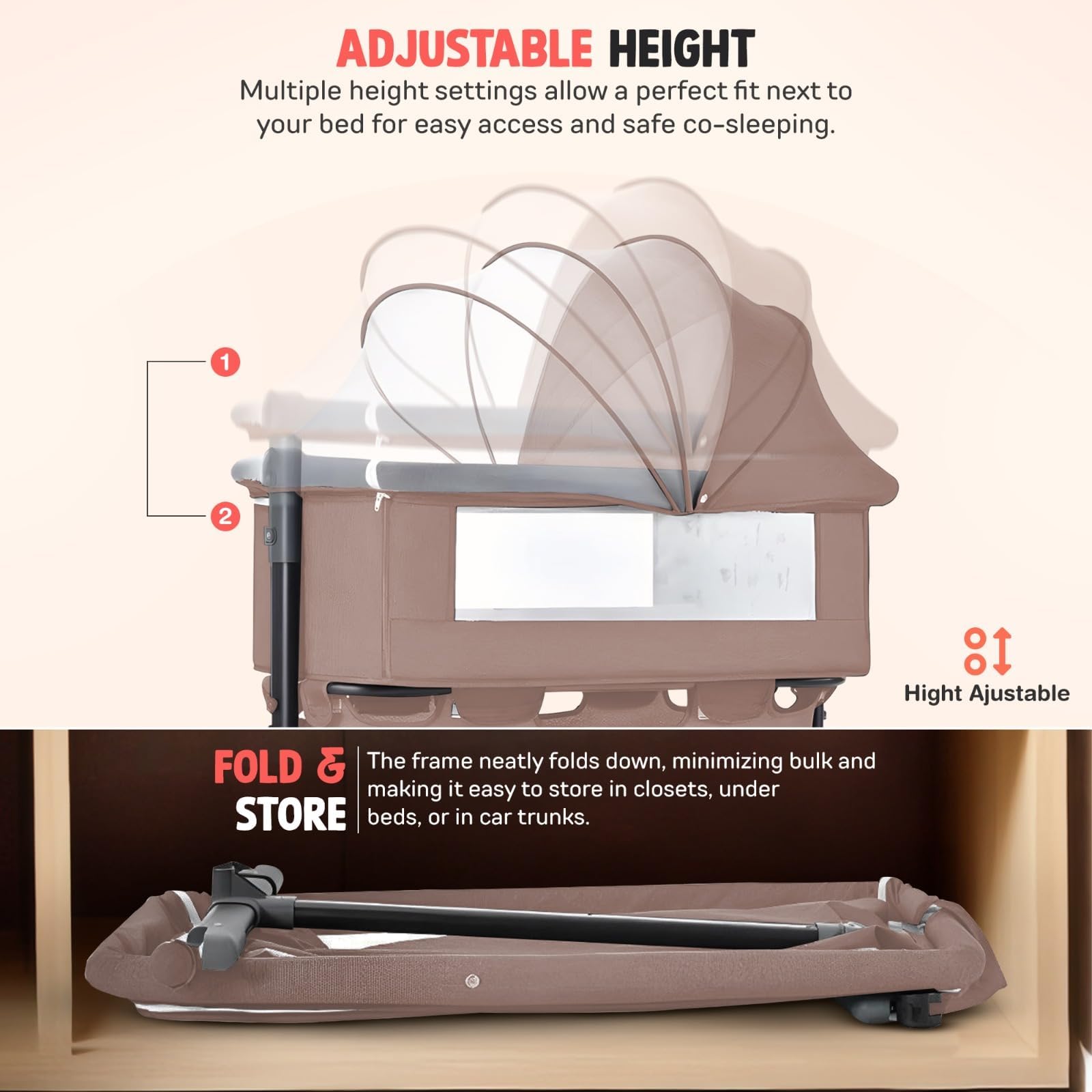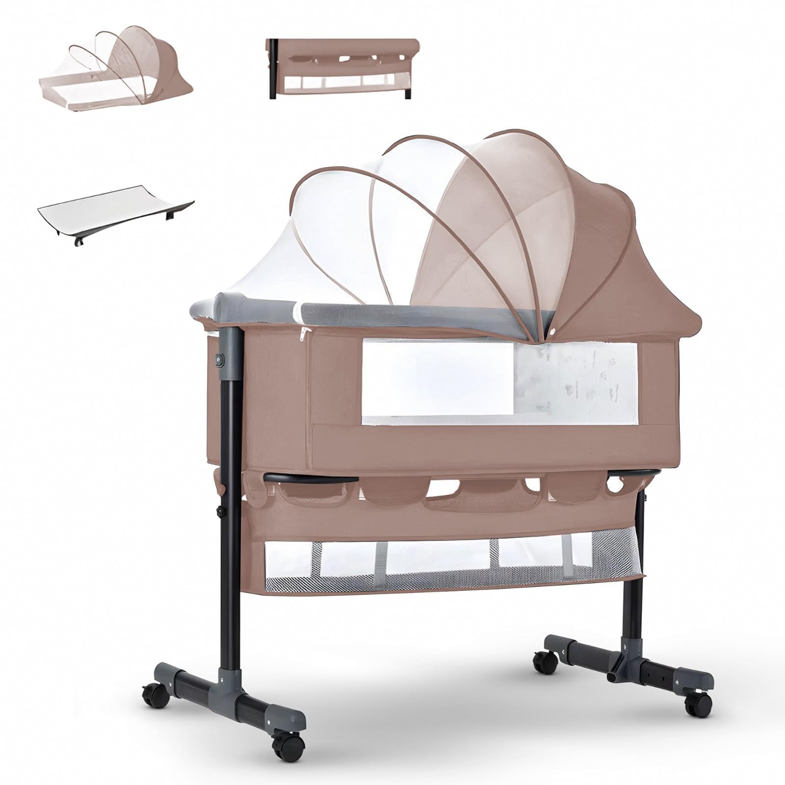 Baybee 3 in 1 Baby Bedside Crib with 2 Height Adjustable Bed Cot Bedside Bassinet for Kids