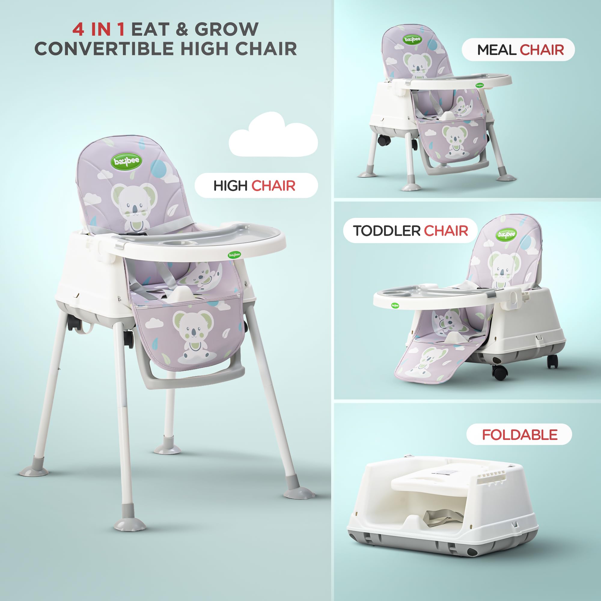Baybee 4 in 1 Convertible High Chair for Kids Foldable Baby Feeding Chair
