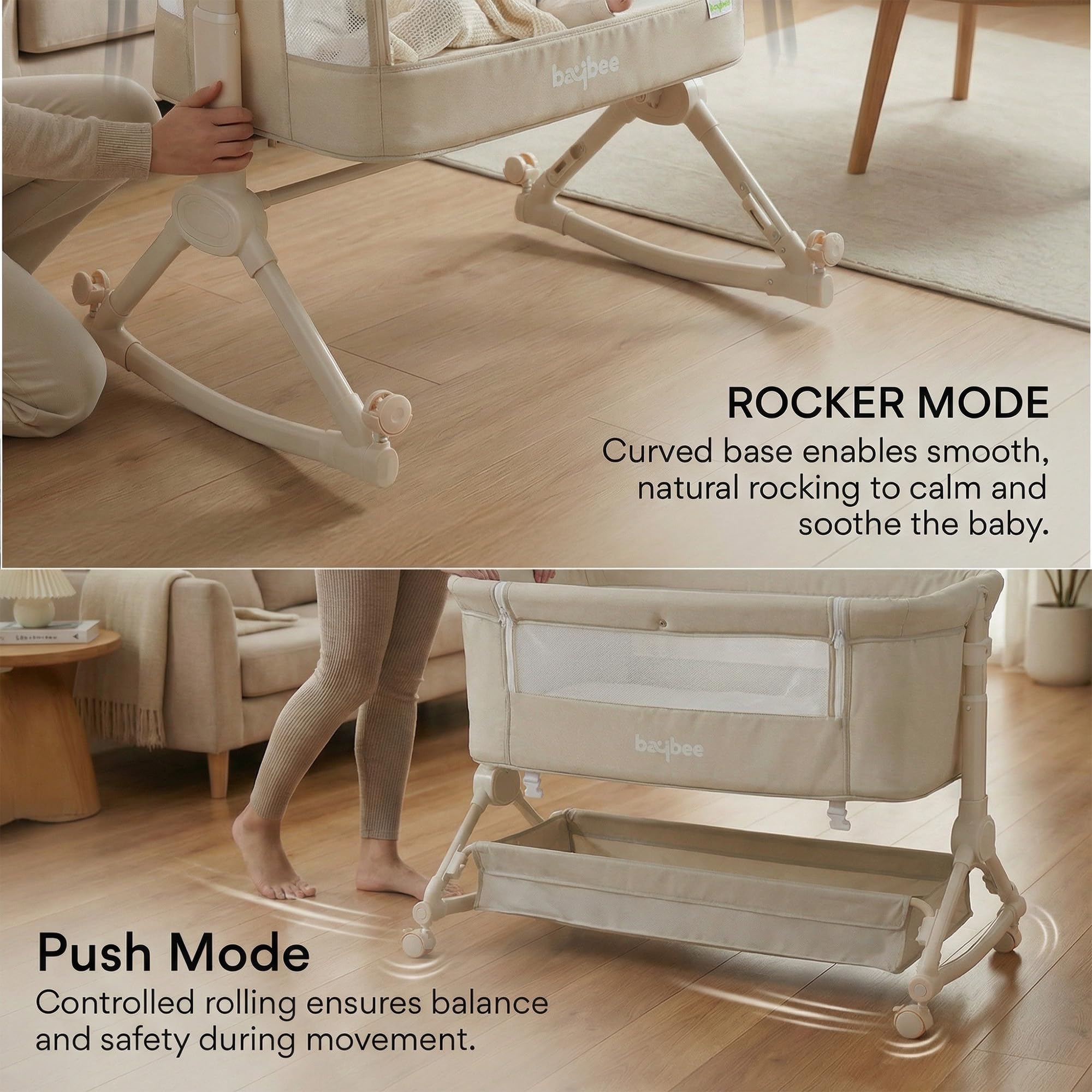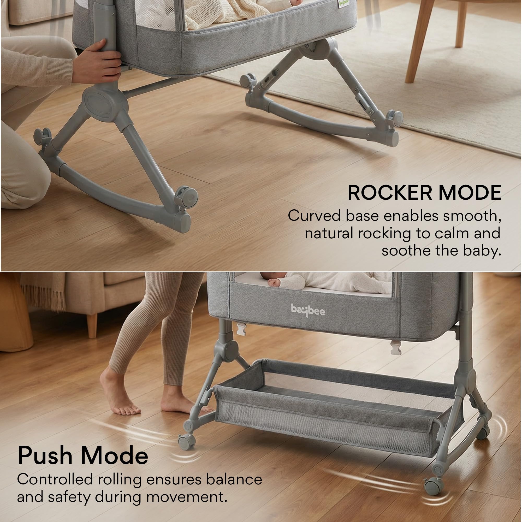 Baybee Bedside Crib for Baby with Rocking Mode