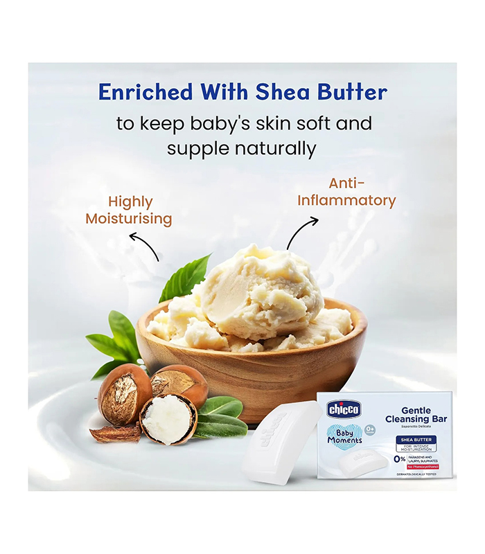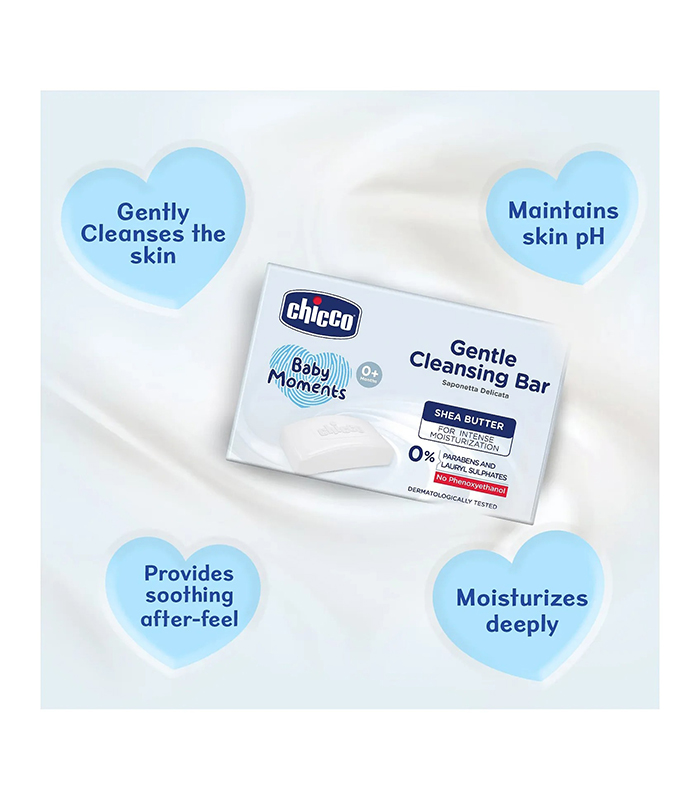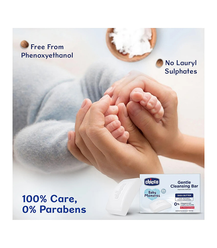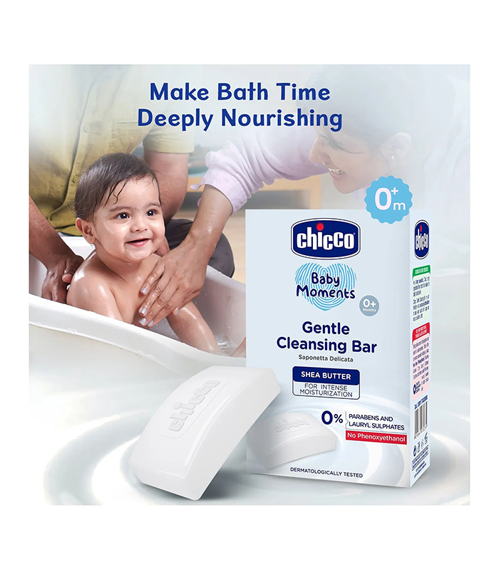 Chicco Baby Moments Gentle Cleansing Bar is enriched with Goodness of Shea Butter to leave your baby’s skin supple and moisturized after a bath. It is free from Parabens and Lauryl Sulphates. It doesn’t contain Phenoxyethanol.