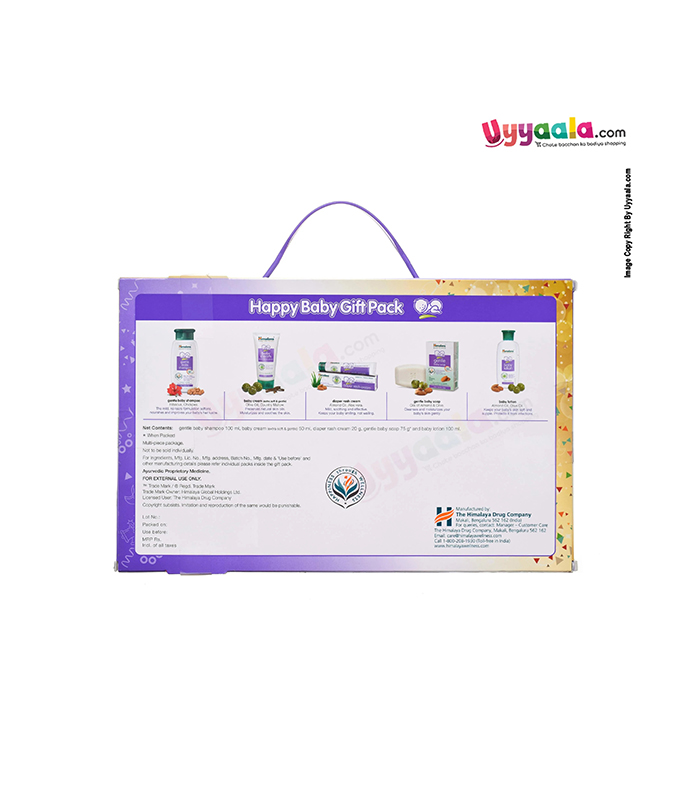 Baby Gift Pack : Gentle baby shampoo (100 milliliter), Nourishing baby oil (100 milliliter), Diaper rash cream (20 grams), Moisturizing baby soap (70 grams), Baby lotion (100 milliliter), Baby powder (100 grams), Gentle baby wipes (12’s)