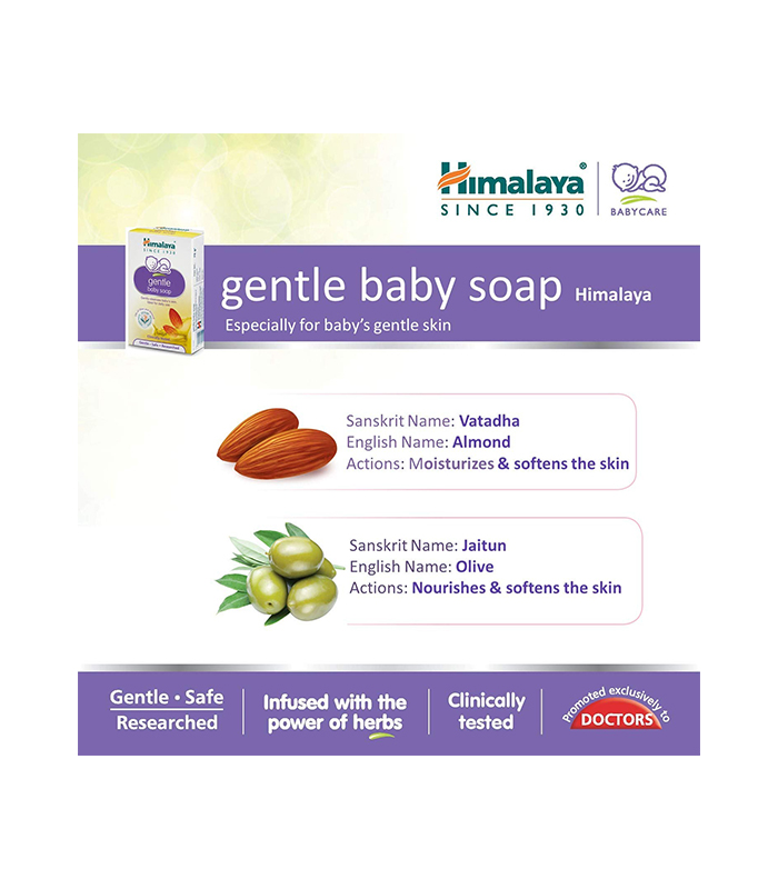 Direction For Use: Wet baby’s face and body. Apply Himalaya Gentle Baby Soap, gently working up a lather. Rinse thoroughly.