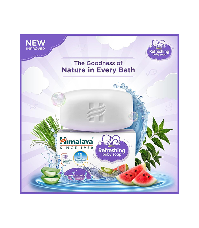 Directions for use: Wet baby’s face and body. Apply Himalaya Refreshing Baby Soap, gently working up a lather, Rinse thoroughly.
