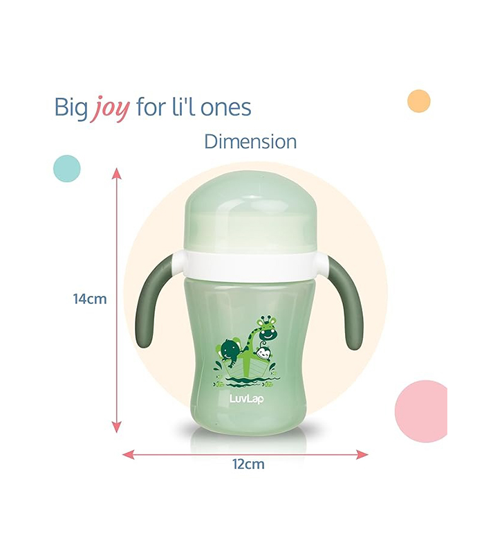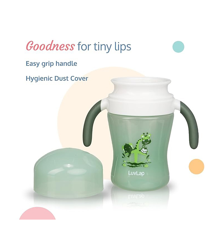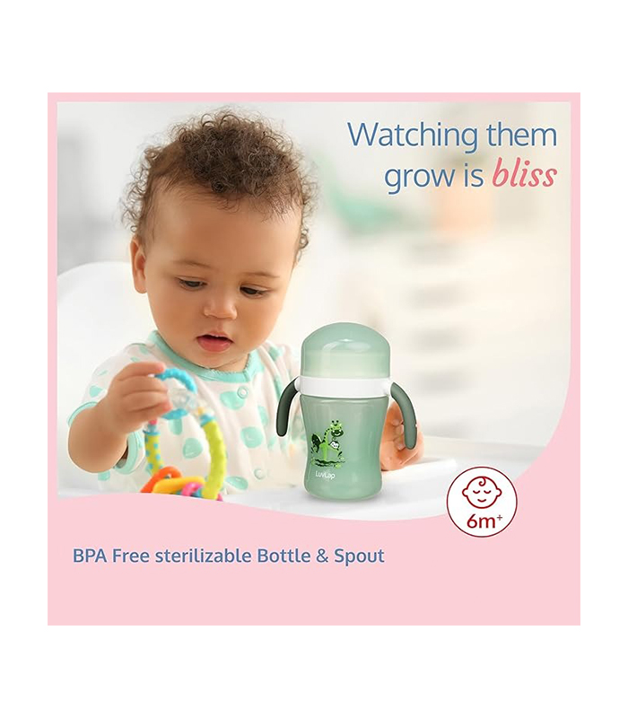 LuvLap 360° Soft Spout Baby Trainer Sipper, 240ml, Dual Handle Leakproof & spillproof Sippy Cup for Babies/Toddlers/Kids, Easy-Grip Handles, BPA-Free, Ergonomic Design, Green