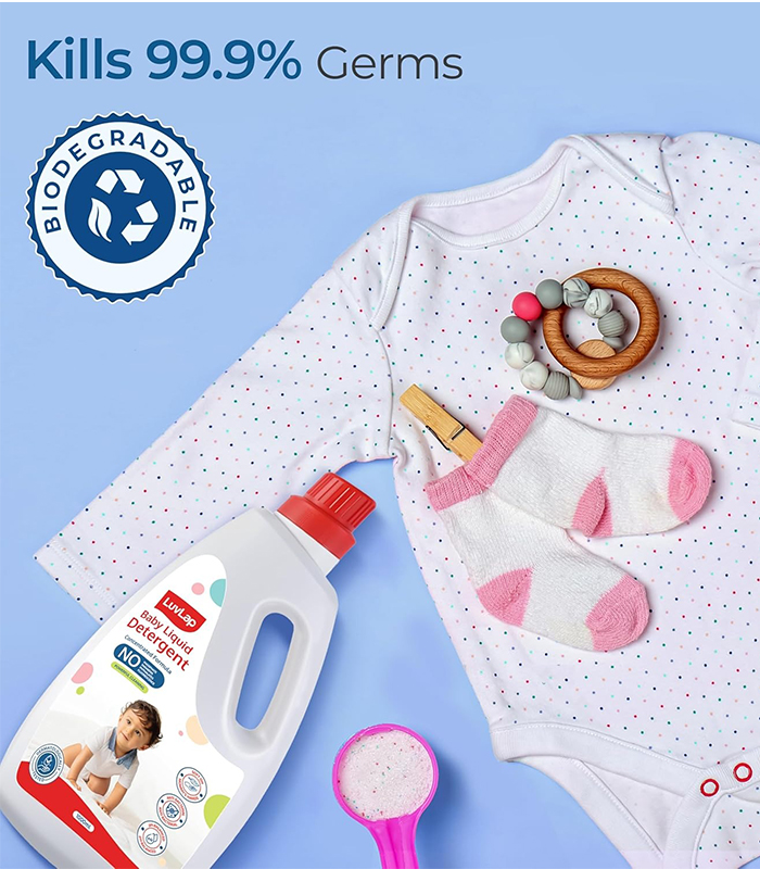 Biodegradable and Environmentally Friendly: Contribute to a sustainable future with our biodegradable formula, making LuvLap Baby Laundry Detergent an eco-conscious choice without compromising on cleaning efficiency.