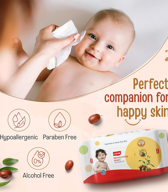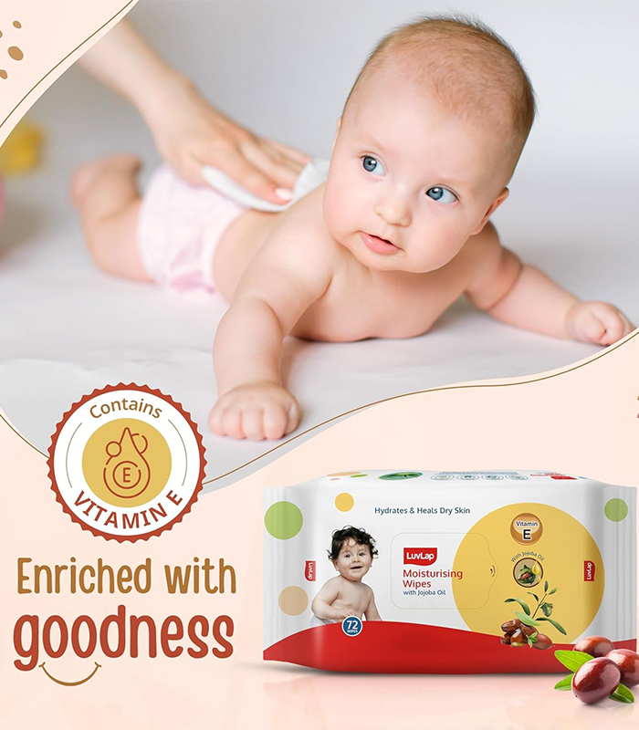 LuvLap Moisturising Wet Wipes without Lid For Baby Skin, Enriched With Jojoba Oil & VitaminE, pH Balanced, Dermatologically Safe, Paraben & Sulphate Free, 72 Wipes