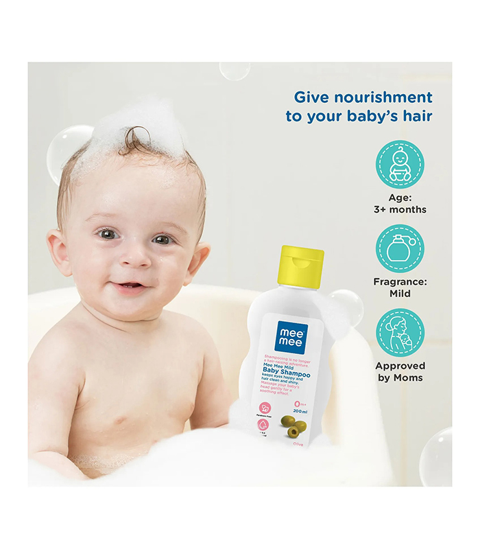 Fearlessly lather your baby’s hair right from birth with Mee Mee Mild Baby Shampoo which is tear-free. Infused with olive extracts, it helps to lock in the natural oils, cleanses the hair leaving them lustrous and shiny. Microbiologically tested to ensure a safe and happy bath time. It helps to nourish and strengthen your baby’s soft hair. It is a toxin-free formulation, which has been dermatologically tested, to moisturize baby scalp, promote hair growth and strengthen hair. Especially designed so as to be gentle & safe for use on new born baby’s skin.