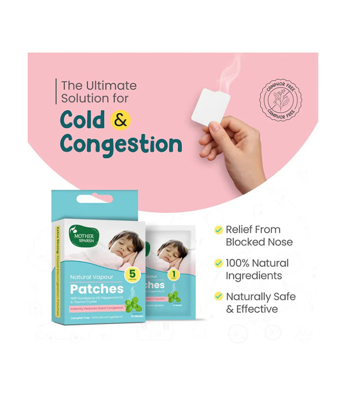 Mother Sparsh Natural Vapour Complete Cold Relief Roll-On is made with 100% natural ingredients like Eucalyptus, Peppermint, and Thymol Crystal to provide instant relief from chest and nasal congestion. Safe for babies 3+ months, this camphor-free, residue-free formula offers up to 4 hours of relief from colds and allergies without harmful chemicals. Simply apply to the baby’s chest, back, or surrounding areas for a soothing experience.