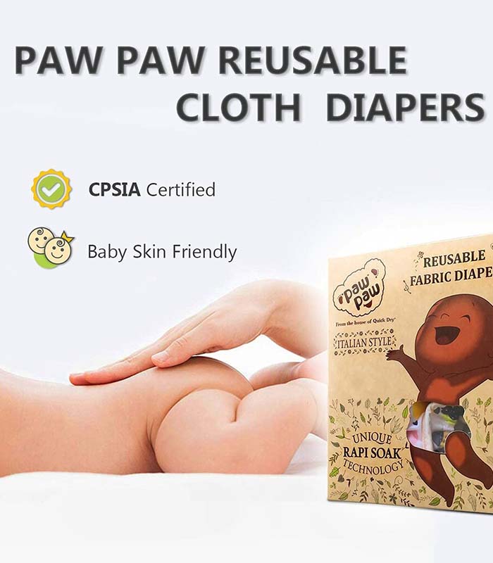 PAW PAW Pack Of 3 Reusable Cloth Diaper For Babies | Washable & Reusable Cloth Diaper For Babies Set Of 3