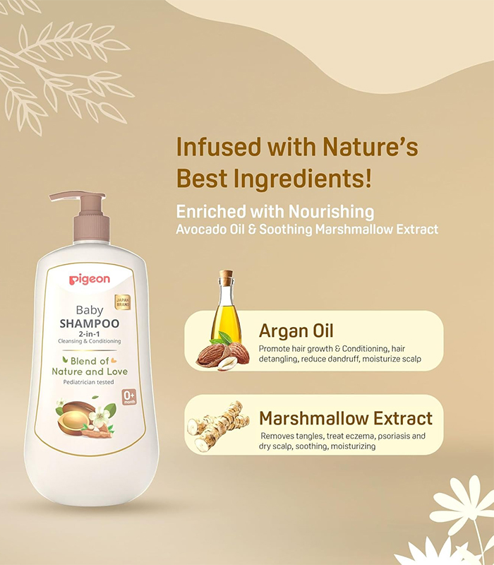 Pigeon 2-in-1 Baby Shampoo For Cleansing & Conditioning, Enriched With Avocado Oil & Marshmallow Extract, Parabens Frew, SLS & SLES Free – 200 ml