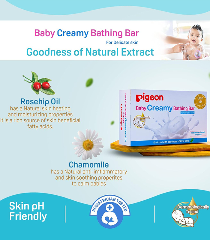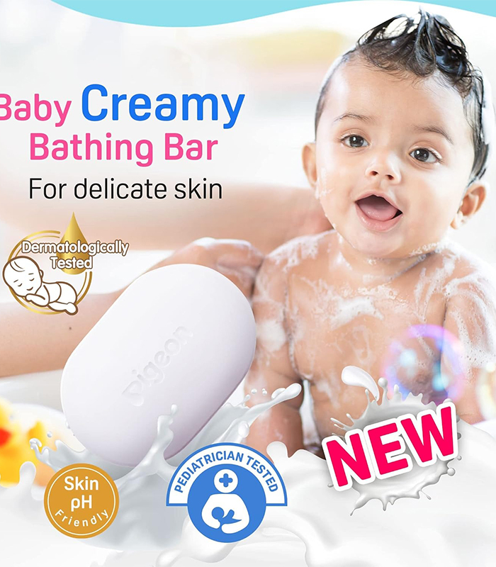 Pigeon Baby Bathing Bar for Baby’s Sensitive Skin/Creamy Bathing Bar Soap, 75 g Pack of 4