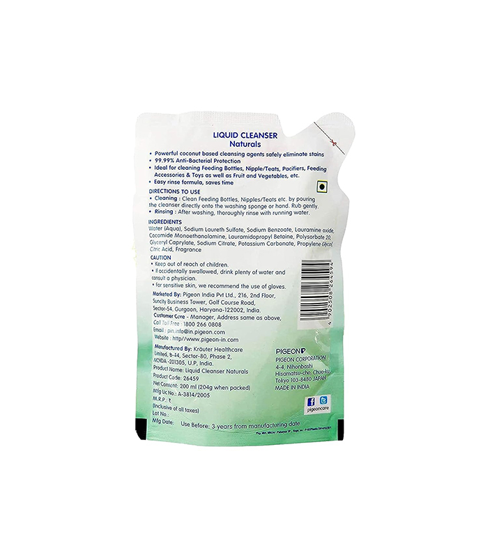 Pigeon Liquid Cleanser Bottle, 200 ml (Green)