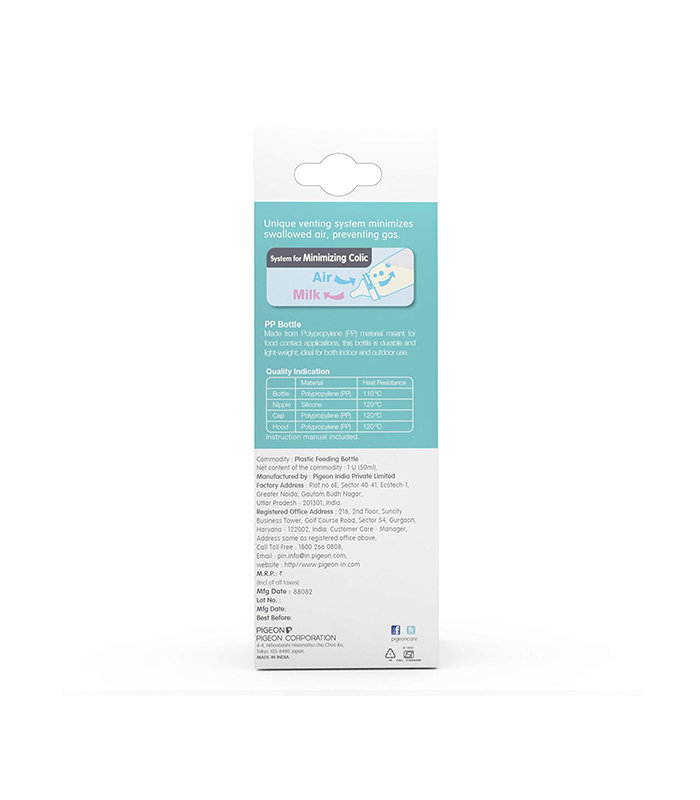 Pigeon Peristaltic Nursing Bottle’s unique venting system minimizes swallowed air, Preventing Gas and comes with AVS technology