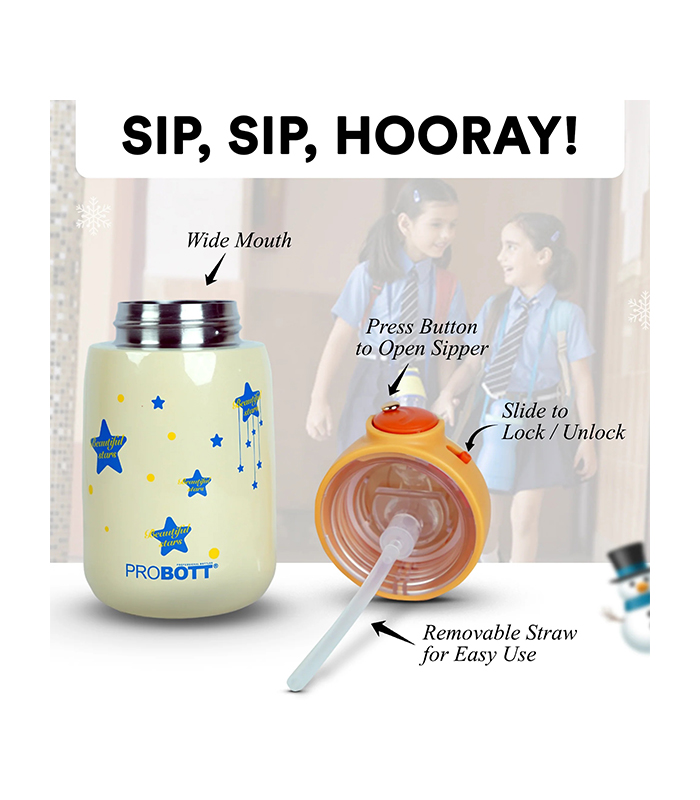 Probott Cool Kid 360ml Hot & Cold Sipper Bottle for Kid with Straw & Handle, Orange