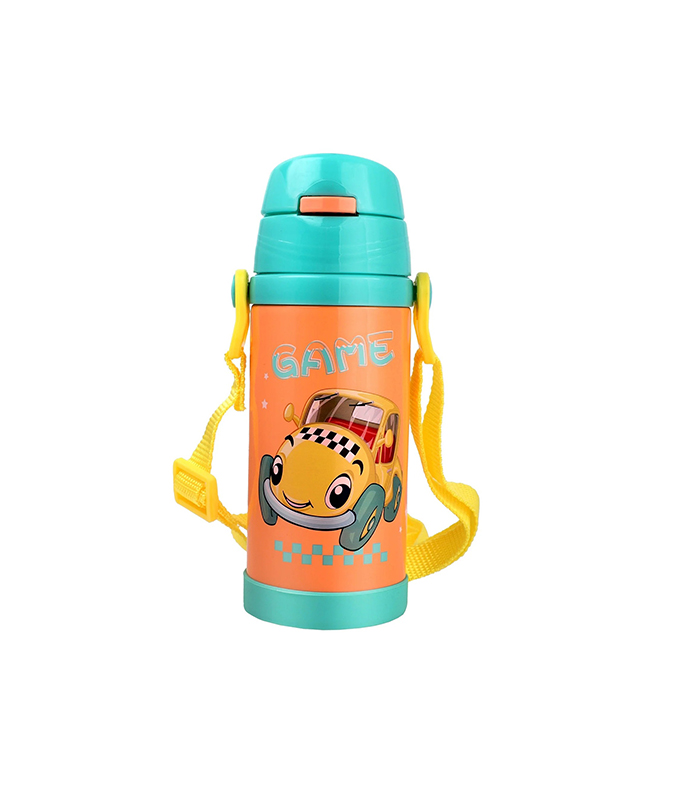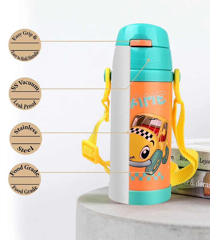 Probott Jerry 350ml Water Bottle with Straw for 3-5 yrs Old Kids | Stainless Steel Hot & Cold Sipper Bottle for Kid, Orange