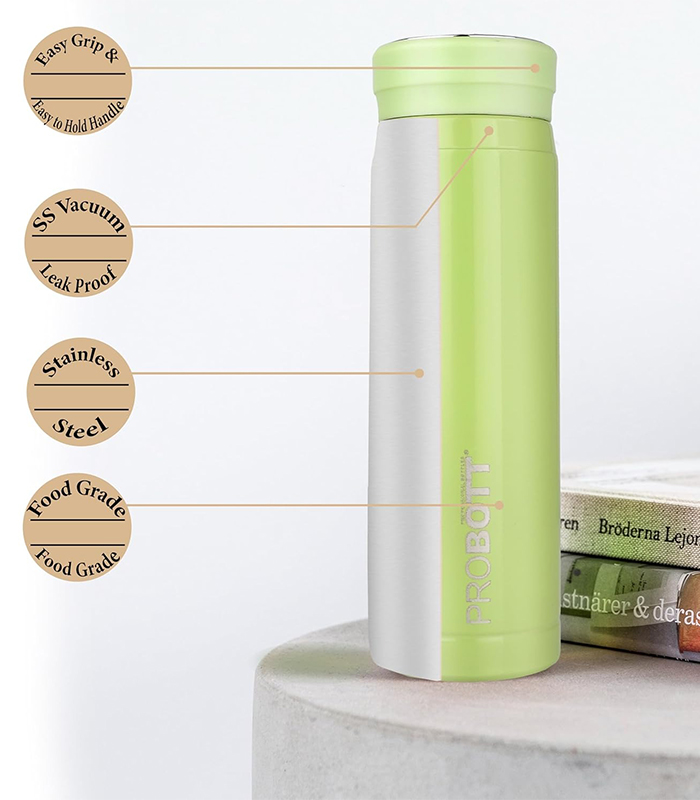Probott Wow 200ml Stainless Steel Vacuum Insulated Flask for Kids | Perfect Water Bottle for Baby, Green | Wide Mouth | Easy to Open & Carry | Hot & Cold | Perfect for Toddlers | Leakproof
